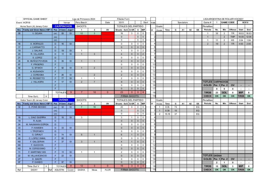 | 20 | Villagra Juan Cruz | 0 | 1 | 9 | 0 | 0 | 0 | 0 | 0 |