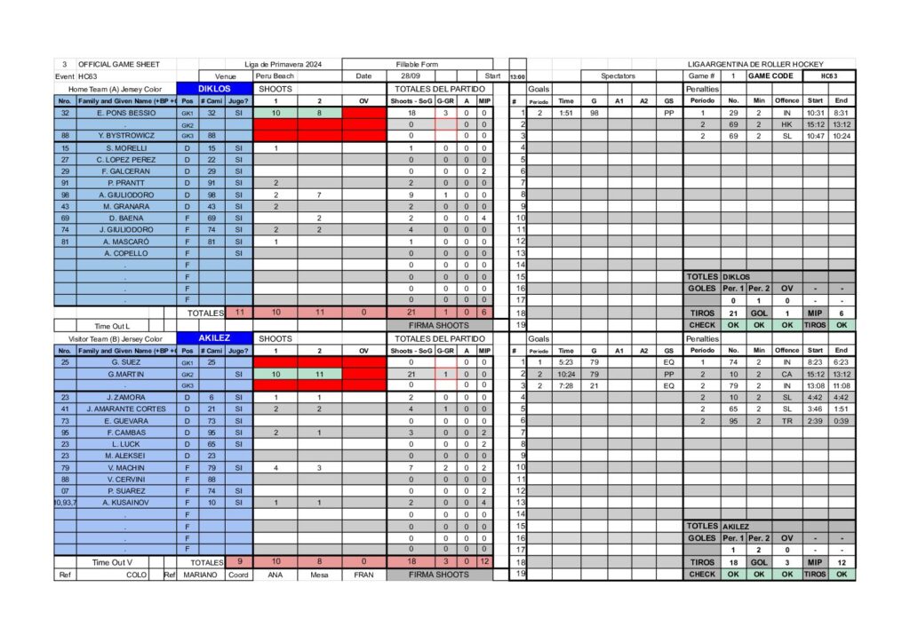 | 23 | Juan Martin Zamora | 0 | 1 | 2 | 0 | 0 | 0 | 0 | 0 |