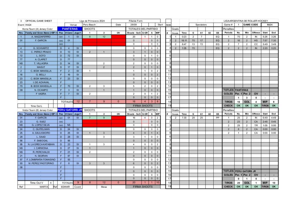 | 15 | Villagra Teo | 0 | 1 | 2 | 0 | 0 | 0 | 0 | 0 |