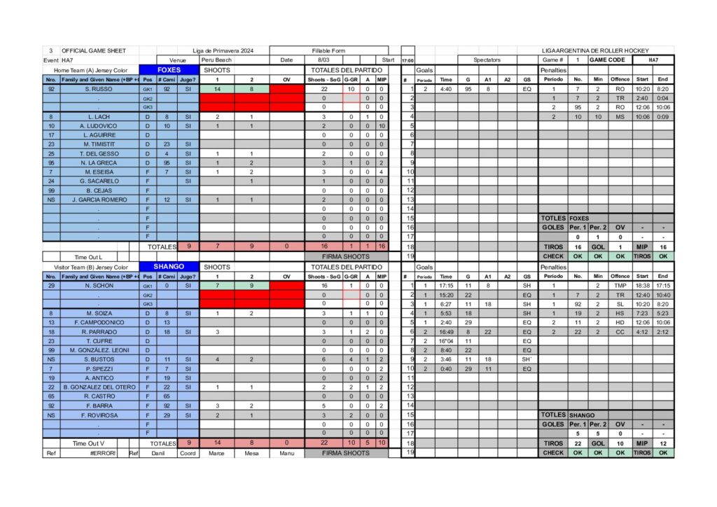| 92 | SEBATIAN RUSSO (FOX) | 0 | 1 | 0 | 0 | 0 | 22 | 10 | 0 |